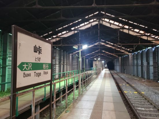 ▲旧4連続スイッチバック駅のうち、赤岩駅は周辺集落が無人化したため2021年3月に廃止。