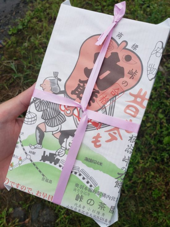 ただし九州の折尾駅とは違い、奥羽山脈の真っ只中に位置する峠駅は日本有数の豪雪地帯で、冬期は遅延や運休が発生することもしばしば。予め運休が計画されている日は当然立ち売りはお休みとなりますが、列車が走り続ける限り8時~18時台に峠駅を発着する上下6本の列車で、峠の力餅の立ち売り販売を行っています。ただし停車時間は30秒と非常に短いので、購入の際は予め千円札をお持ちになり、列車最後尾のドアまでお越しください。