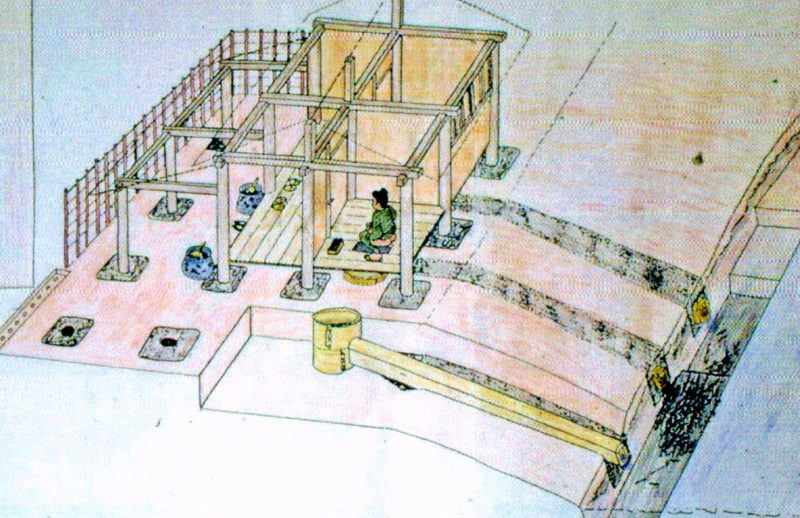 ▲復元古代水洗厠舎。