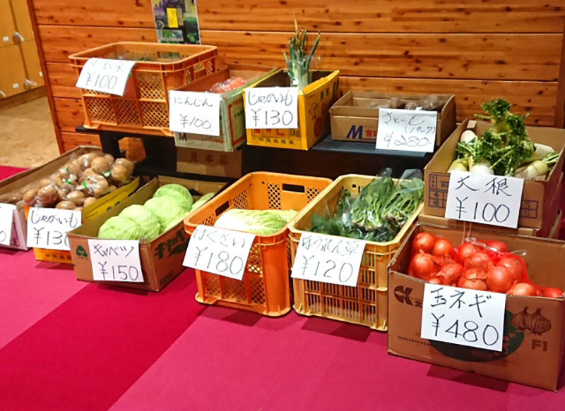 売所では目の前の片貝漁港で水揚げされた新鮮な魚介類はもちろん、太陽の恵みを沢山受けた新鮮な野菜などが販売されていた。