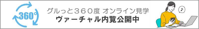 弊社ホームページ画面の【都道府県から探す】(県を一覧で掲載している箇所)の下部にある【グルッと360°オンライン見学 ヴァーチャル内覧公開中】をクリックしてみてください。