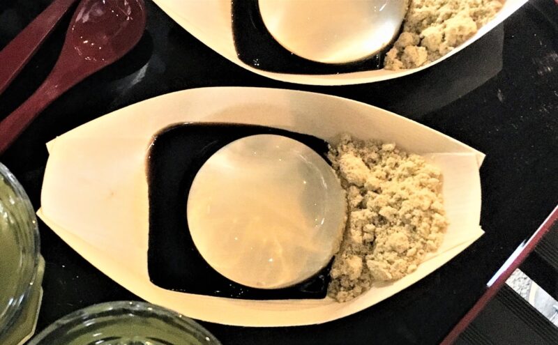 賞味期限が短いというのは、実物を見ると納得できるかもしれません。餅というよりはゼリー、ゼリーというよりは水そのもの、というのが私の印象でした。水が球状にまるまって存在を保っている。そんな外観です。