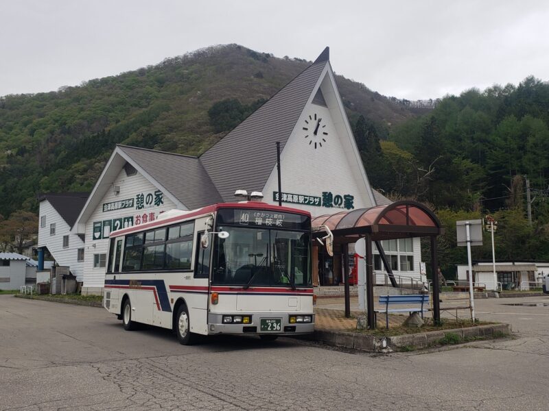 ▲会津高原尾瀬口駅から発着している会津バスが、檜枝岐村へ向かう唯一の定期公共交通機関。毎年11-4月が1日2往復、5-10月が1日4往復運行されている。