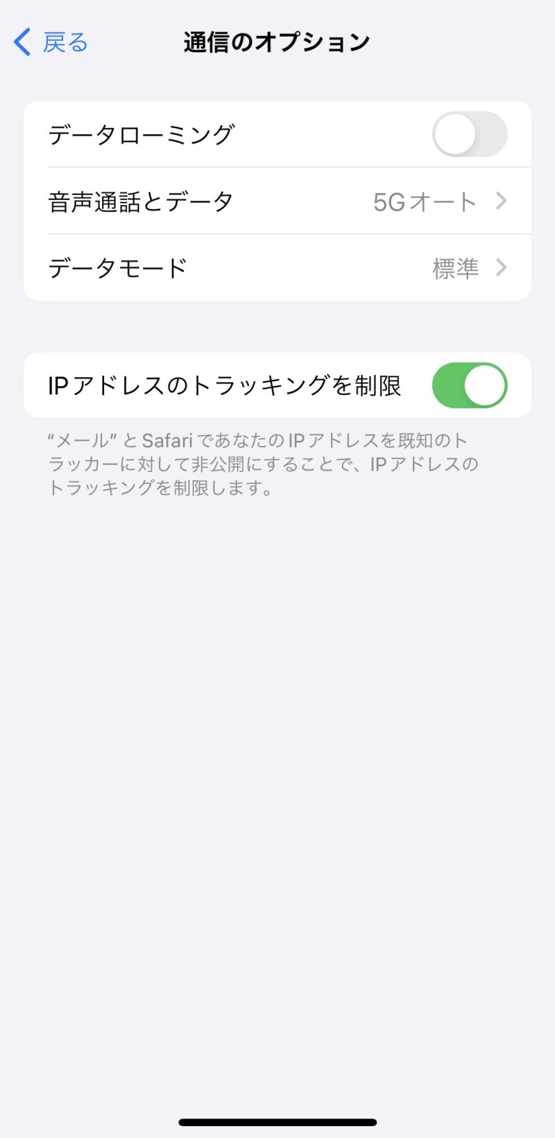 ▲データローミングオフ時。