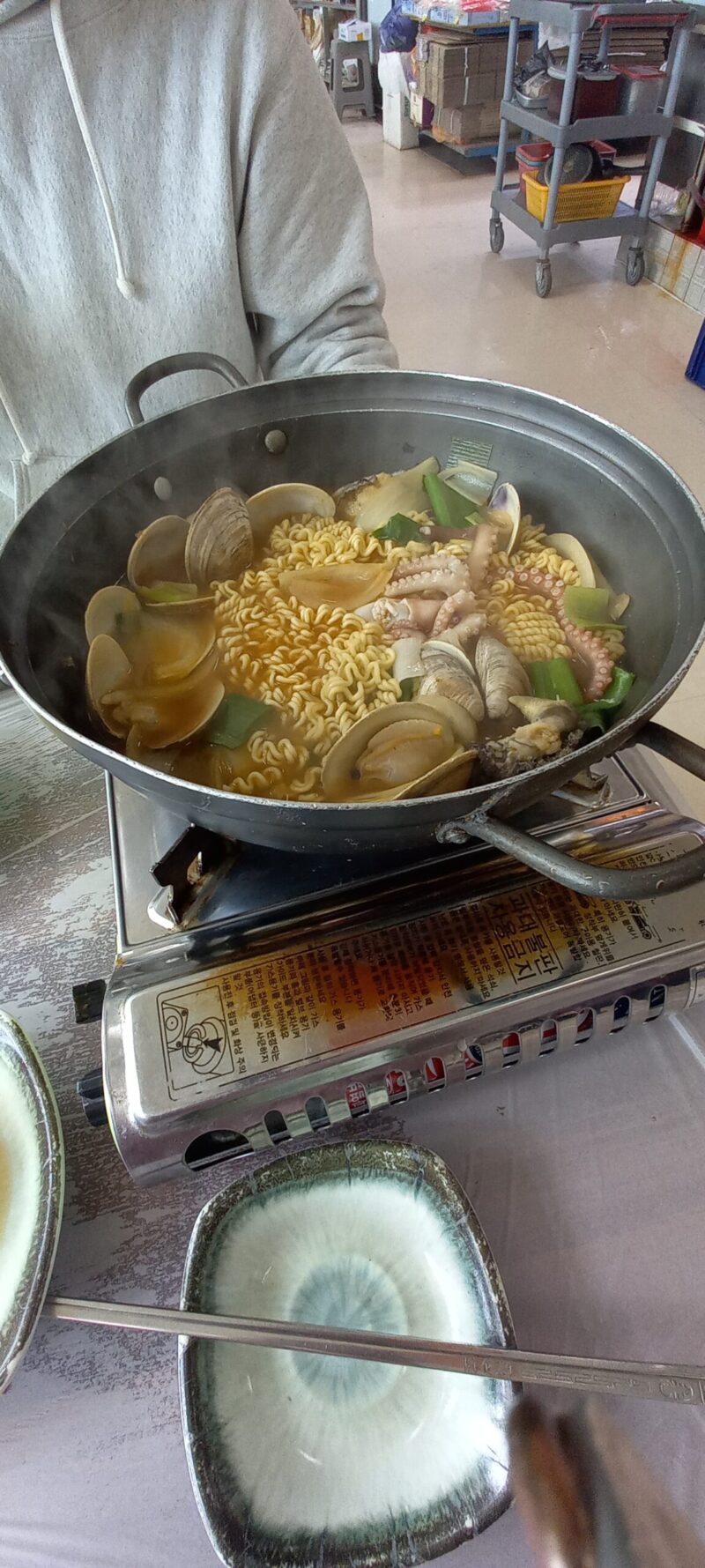 ▲釜山のチャガルチ市場にて。海鮮ラーメンが程よい辛さで美味しかったです。