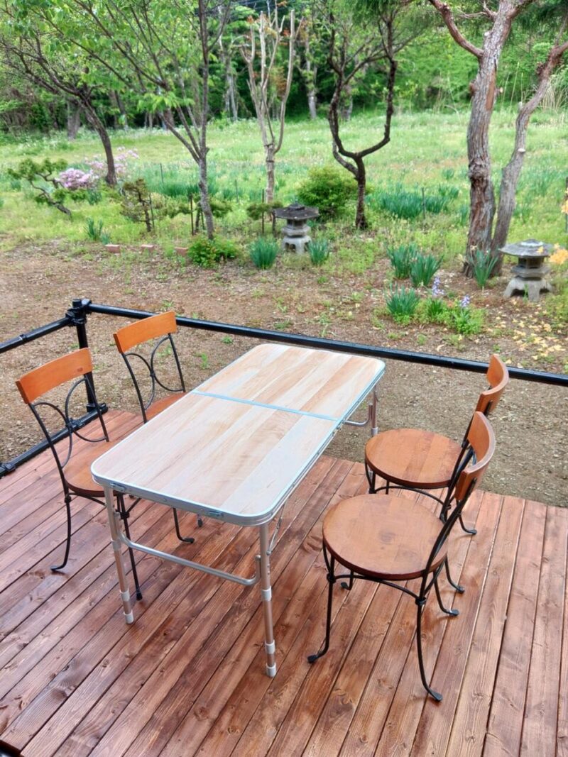 ▲庭に設置した自作のデッキ。