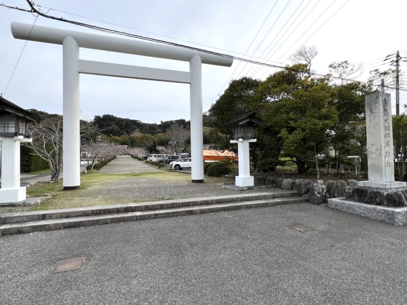 境内入口には遠くからでも目立つ白い鳥居、一の鳥居があります。