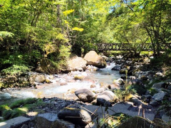 川の水はひんやりと冷たく、水辺に立つと涼やかな風が吹き、自然のクーラーです。