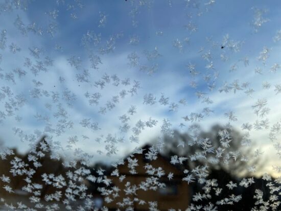 ▲ふと天窓をみると雪の結晶が。(山梨県北杜市)