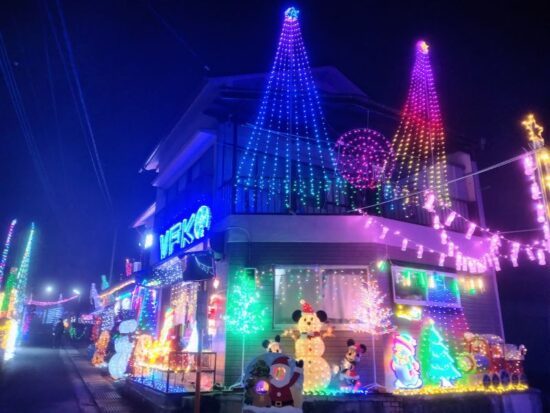 毎年、12月1日から翌1月3日の期間、民家約40軒の壁や庭木などに、計約30万球のLEDが飾り付けられます。約500mにわたって富士山や桜、観覧車などをかたどったイルミネーションが施され、静かな街並は幻想的な雰囲気に包まれます。