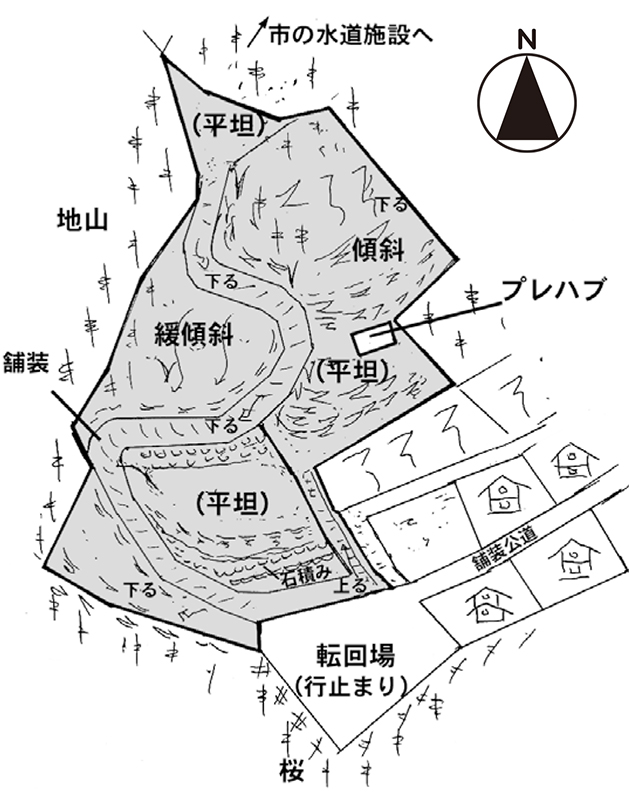 ひな壇と傾斜地
