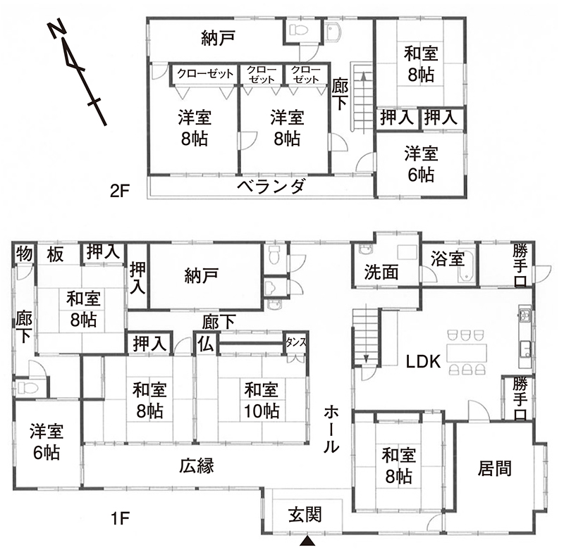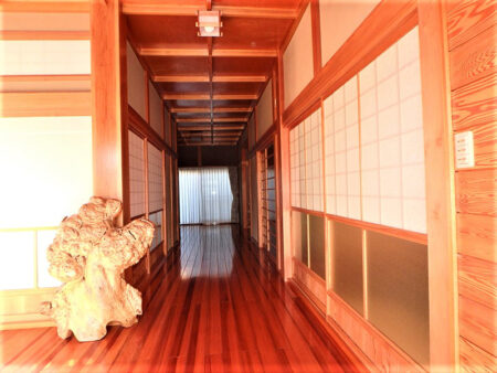 リアス式海岸に象徴される南三陸の唐桑半島は、陸中海岸国立公園に指定されており、漁港が多く、海の幸が豊富なところ。近くの海岸には奇岩の巨釜・半造などがある。物件は、観光施設で、展望浴場のある漁火パークに近い、太平洋を望む南下がりの高台に建つ大型和風住宅。部屋数は10LDKと納戸つき、2間幅の玄関、広い廊下、良材を使った見どころのある邸宅で、大変きれいに使われており、キズ、汚れも見られず、上質感が漂っている。個人住宅だけでなく、保養所やゲストハウスにも使えそうだ。手ごろな広さの畑もあり、自給自足生活もすぐに始められる。