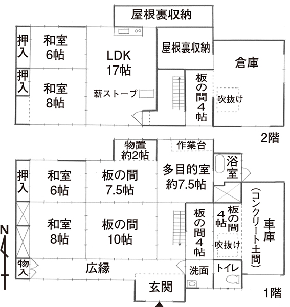 物件のある東条集落は海岸から12kmほど内陸へ入った静かな農村地域。築90年ほどの古民家は田舎暮らしのために代々都会の方が所有しているもの。集落の外れに建ち、前面道路は広く往来が少ないため静かで、視界も開けている。西側では菜園、東側では田んぼ、客土を入れれば菜園が作れる。建物はもちろんそれなりに傷みや古さはあるが、床、屋根もしっかりしておりそのままでも充分使える。1階は広く趣味や仕事用にして、2階を居住スペースという感じだ。薪ストーブがあるのもうれしい。雪下ろしが要らないのも魅力的だ。車庫と室内が直接繋がっているのも便利。北条駅が近く、市街や長岡方面へも電車で気軽に行ける。