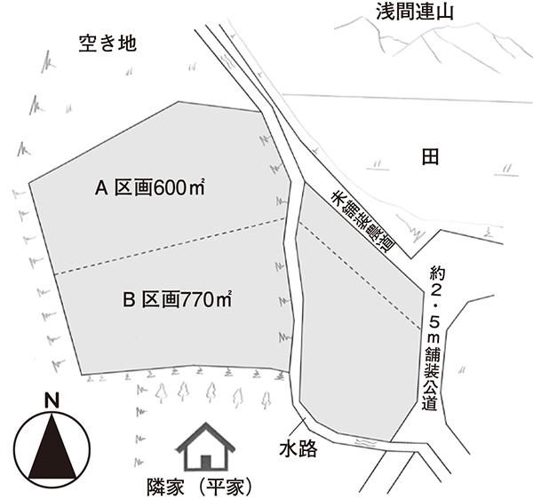 東側が幅約2.5mの舗装公道に接する。(セットバック必要)