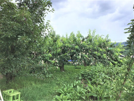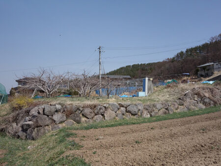 国道142号線から南へ700m程入ると、西へ緩やかに傾斜する土地は3段のひな壇地。3方向は畑と果樹園が広がり、南西の方角には蓼科山を望める。日当たりが良く圧迫感は無い敷地は、上段を畑、中段には桃の木が7本植り、下段はさくらんぼの木が1本植わっている。上段部分を宅地へ転用し小さな住宅を建てれば菜園スペースも確保できそうだ。住宅を建てる場合は、土地の分筆と転用申請で、引渡しまでは数か月を要する。布施温泉までは1.2km。望月中心街までは2.5kmと生活便も良好だ。上下水道が引き込めるのも有り難い。