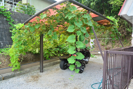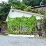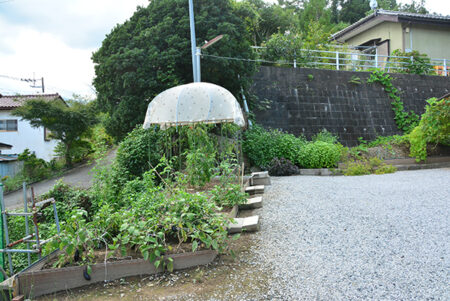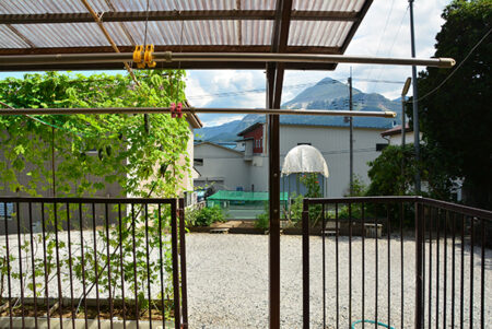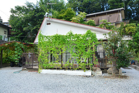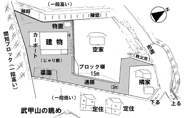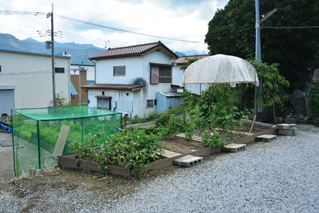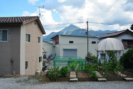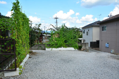 秩父ミューズパークの南東に広がる別所地区は、秩父市街地から荒川を渡った対岸に位置する。荒川左岸は河岸段丘となっており、巴川橋や秩父橋、そして佐久良橋によって市街と往来することになる。物件は市街を見下ろす水道局の手前にあり、細い路地の最も奥にあるこぶりな住宅。現在賃貸中の建物は築年数は経つものの、きれいに使われており、そのまま利用可能。敷地内には家庭菜園、カーポートや建物前には蔓物で緑の壁ができるほど。建物は込み入っているが独立感があり、ちょうど目の前に武甲山が見える。宅地延長された通路部分が乗用車を乗り入れるのには少し狭いので、ミニバイクや自転車利用の方には最適だ。