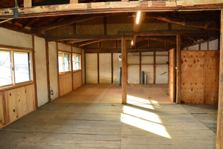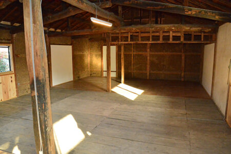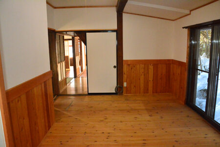 沼田市内より北へ16kmほどの所にある迦葉山。山の中腹にある弥勒寺は、まさらに深山幽谷の浄域として知られ、日本一の天狗面とともに異彩を放つ観光スポットだ。ラベンダーのシーズンには玉原高原とともに観光客が訪れ、物件は玉原への道中、迦葉山の南に位置する発知新田(ほっちしんでん)の集落の中にある。敷地はゆるかかに南へ下る地勢で、西側の通路は暗渠になった用水路で、心地よい水の流れに包まれる。建物は上州民家らしい元養蚕農家の2階建て。空き家期間も短く、大幅な改修が施されすぐに利用可能。スキー場への拠点や小中学校も歩ける距離なので子育て世代にも良さそう。