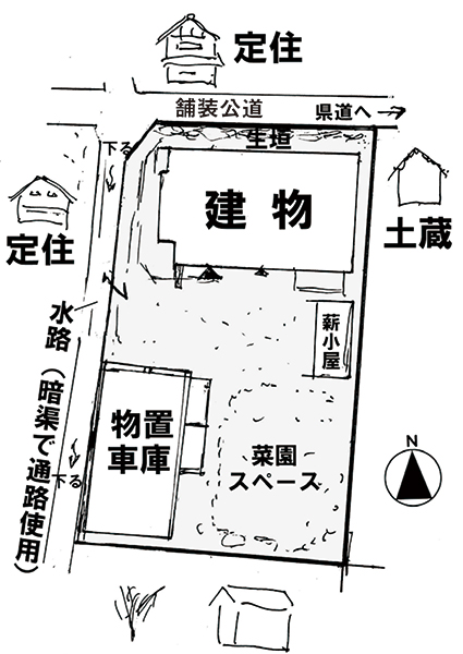 北側が幅約3mの舗装公道に接する