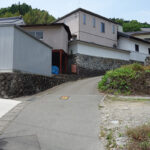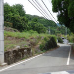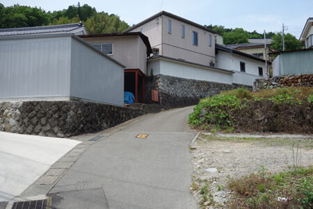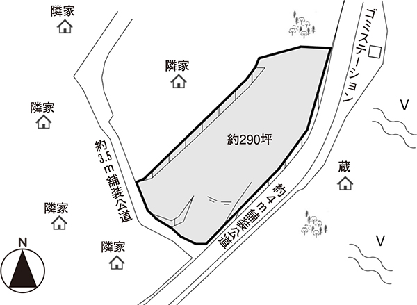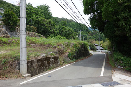 南東側が幅約4m、南西側が幅約3.5mの舗装公道に接する。
