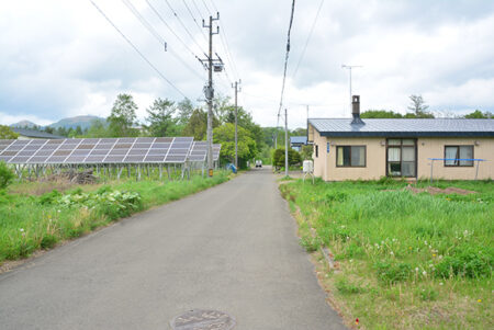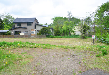 ふるさと情報館でも成約者が多い道東・弟子屈町。釧路空港から北へ車で約1時間、道道53号線は町内南部に至り、「335鐺別通り」となる。物件は通りから一軒挟んだ裏手、鐺別川の南岸・桜丘地区にある小さな分譲地2区画分の土地。上下水道引込可能で、隣家とも適度に離れた郊外住宅地といった雰囲気。通り沿いには銭湯や小さな商店も徒歩で行ける。通り向かいの広大な鐺別神社、桜ヶ丘森林公園にはオートキャンプ場もある。バス停まで110mほど。
