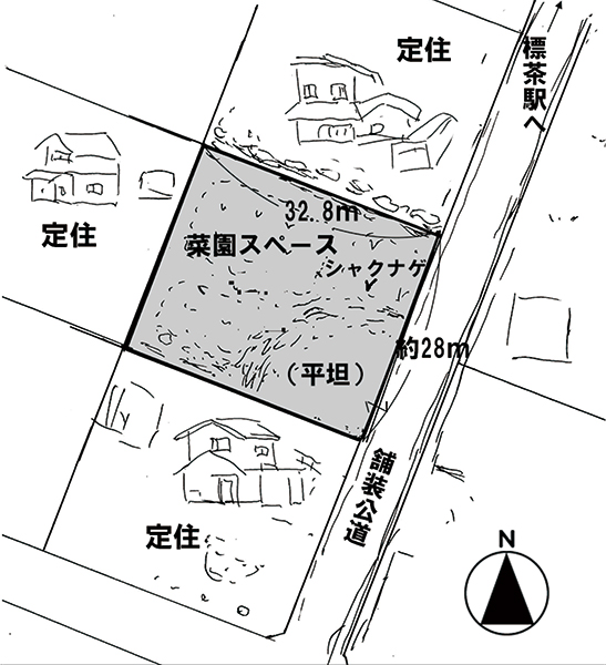 東側が幅約8mの舗装公道に接する。