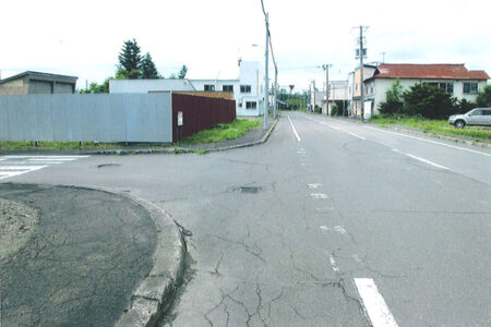 北西側が幅約13m、北東側が幅約9mの舗装公道に接する