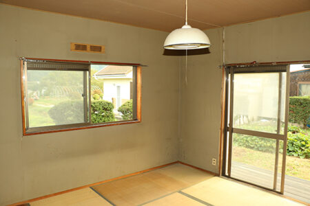 伊那谷の北端付近、箕輪町と辰野町の境界あたりには中央自動車道の伊北インターチェンジがある。そこから天竜川方面に向かうと田畑と住宅が点在している地域となり、その中にあるのが今回の物件。敷地はいわゆる旗竿地だが、一般的なものと異なり建物前は道幅約8mで、大抵の車なら難なく通行出来る。建物は空き家となって数年経っており、外壁内装水回りともにある程度の修繕工事を推奨するものの、建物の隣には家庭菜園が楽しめるスペースがあり、現在はお隣さんに無償で貸している状態。建物の2階からは飯田線が走る上伊那の田園風景が広がっており、長閑な眺めがイチオシポイントだ。
