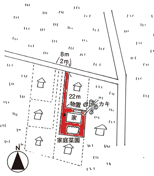 北側が幅約4mの舗装公道に接する