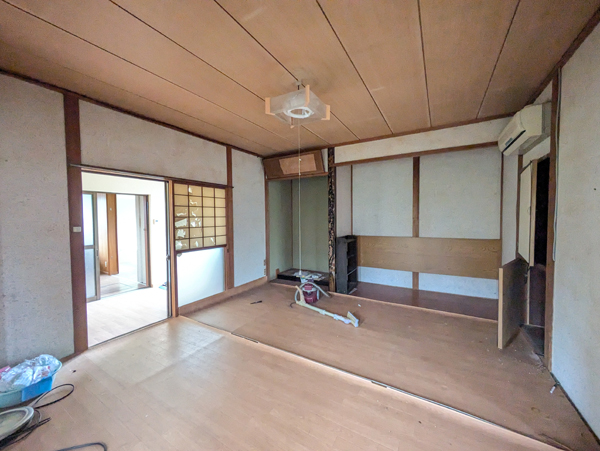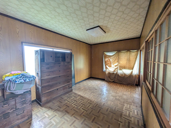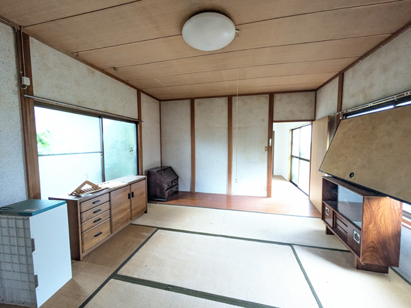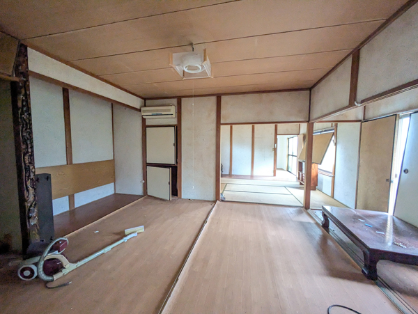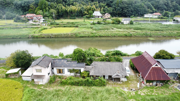 一級河川三篠川は広島市中心部へ流れる太田川の支流で、高低差も少ないため穏やかな川として親しまれている。そんな三篠川の土手近くにあるのが今回の物件で、南北に並列に4棟建物が並んでいるが、うち2棟は通り抜けが出来る構造のため、間取りは10DKととても広い。南側の平家建がメインの居住スペースで、水回り等もリフォームされているため快適に生活できる。北側の平家建は内外装ともに経年劣化が進行しているため、解体し更地後は駐車場等に転用した方が良いだろう。その隣の古民家は1階2階ともに物置小屋として使っているため、収納スペースにはかなりゆとりがあって使いやすそうだ。