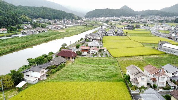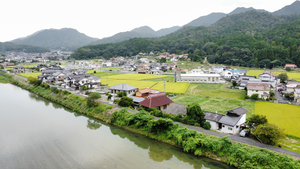 穏やかな三篠川のそばに建つ田んぼのある4棟の民家住宅