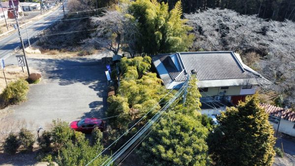 北関東を横断する幹線道路沿い。常連客を多く抱えた、現在も営業中の高級志向の日本料理店。入口の竹や桜を主にした植栽に、石灯篭や鹿威しが一段と高級さを引き立てている。玄関は中二階で、1,2階共に行き来しやすい作り。料理店の作りではあるが、改修で浴室さえ設置すれば住居にもなる。大きさ、部屋数的にも違和感は無いだろう。南側お庭に植わる多種多様の植栽越しにはのどかな湖が望める。室内では幹線道路の音は殆ど聞こえない。西側の広い土地では思う存分菜園作りに精を出せる。ドッグランを作ったり、動物を飼ったりしても面白い。隣家がないので外からの視線も気にしない。建物や土地の使い方を考えると胸がワクワクする贅沢な物件。イオンモールへは車で3分という便利さ。