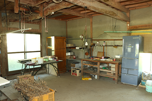 母屋の推定築年は昭和43年か44年頃。母屋の他に木造2階建の作業所(1階89.48㎡、2階54.72㎡)と木造平家建の車庫(1階21.38㎡)あり。