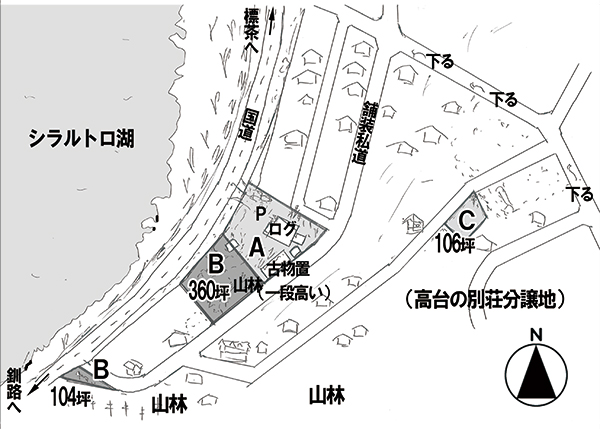 町の南部、釧路湿原国立公園に含まれるシラルトロ湖は、根釧原野と釧路湿原の境界付近にあたる淡水湖。湖の東岸には国道391号線が伸び、釧路と弟子屈、さらに網走まで続いている。物件は国道に接する広い駐車場スペースのあるログハウスの店舗物件。建物の裏手は湖を見下ろす西斜面にある別荘地が続き、自然の林の残る麓側にある、道路より一段高い懐のような立地。丸太の本格ログの母屋はアンティーク・ヴィンテージ感に統一され、裏手にはお菓子工房を増築。母屋に浴室が無く、敷地上部に浴室のある2階建ての別棟があるが、近隣の温泉を楽しむか母屋に増改築を検討するのが現実的だろう。