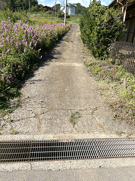 東側が幅約7.5mの舗装公道に接する。北側が幅約2.5mの舗装公道に接する。