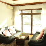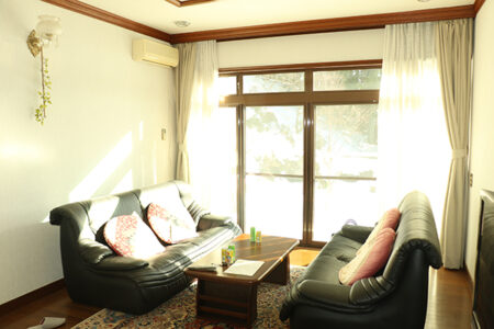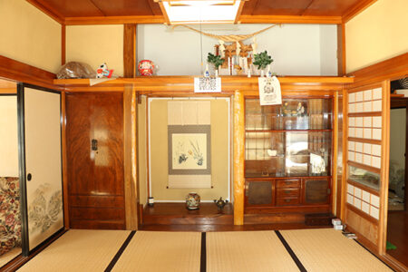 東北道矢吹ICから磐越道小野ICを連絡するあぶくま高原道路は2001年に開通し、これまで高速空白地帯だった玉川村・石川町・平田村の道路事情改善に大きく寄与した。途中の平田西ICから車で進むこと約11分、阿武隈高地を南北に横断する国道349号線の道すがらにあるのが今回の物件。敷地は山林部分を含め約300坪あり、日本家屋らしい瓦屋根の木造2階建と趣のある門扉を構えた自慢の石庭は、全方位が塀に囲まれ重厚感のある佇まい。建物は現状空き家だが定期的に手入れされているため、築40年超の割には室内はとても綺麗で状態も良好。室内の家具家電は概ね引渡し可能な点も魅力的なポイントだ。