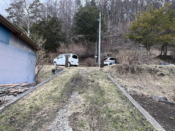 南側が幅約4mの未舗装公道に接する