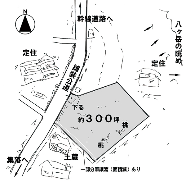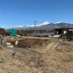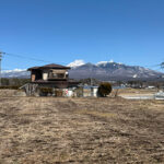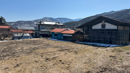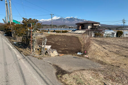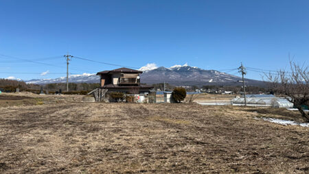 国道20号線より南、旧街道の走る南アルプスの麓側の地域は、八ヶ岳側とはひと味違ったのどかな雰囲気と、地元の方々が暮らす歴史のある集落が点在している。物件は若宮集落の入口に位置する広い土地。ちょうど二股に分かれた小道を入り、伸びやかな景観が広がる好立地。八ヶ岳から遠く霧ヶ峰方面まで望める現況農地で、面積が広めなので農地法5条許可のプランをしっかり考えたい。本誌のお客様でも実績のある地元工務店にも近く、古民家改修の指導を受けて自分の物件を現地再生した方もいる。家庭菜園を楽しみながら、ガレージや物置を建て、母屋を新築、セルフビルドを考えても良いだろう。パノラマリゾートまで車で約5分。