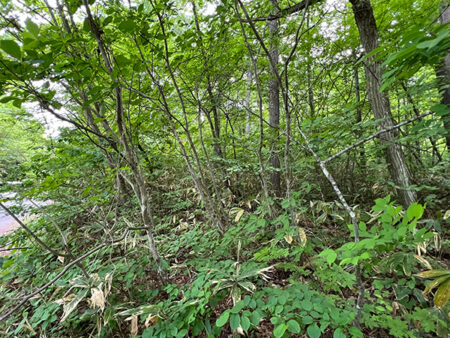 風光明媚な霊仙寺湖のある飯綱高原。物件はその霊仙寺湖に隣接する分譲地内の土地。304坪の土地は唐松林となっているが密生している感じは無く、造成も大掛りにならないだろう。東側の一番奥側に位置しているため、正面には木々の間から旧牟礼村の町を見下ろす景観が広がる。近隣には空地が多く窮屈感は無い。周辺ではゴルフ、テニス、スキーなど四季を通じて楽しめる環境が整っているため、こじんまりした小屋を建て、セカンドハウスや別荘暑地的に使われるのも良いだろう。てんぐの館温泉が近いのも魅力的だ。