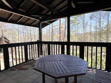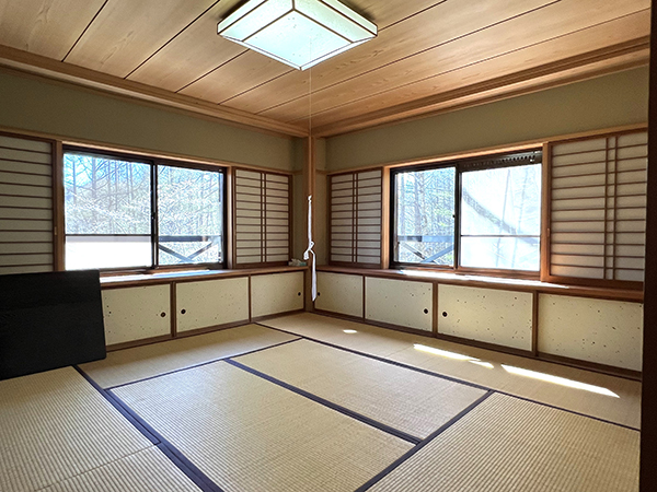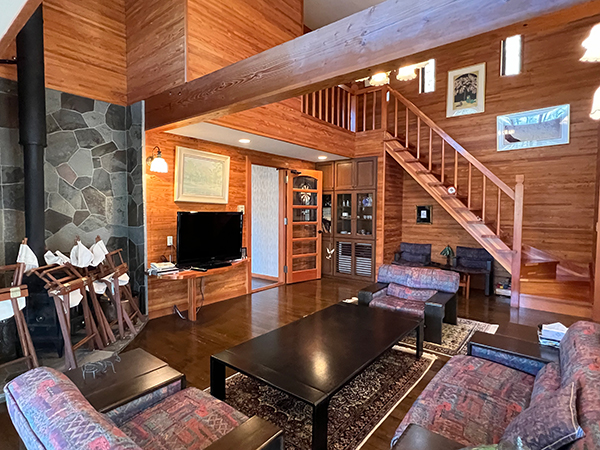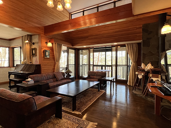 北白樺高原「ふれあいの郷」はブランシュたかやまスキー場や黒耀石の原産地として大規模な遺跡が残されている長和町大門鷹山地区に位置し、標高1,300m台の山稜地帯。国有林の中に家を建てて森づくりに参加し、豊かな自然と積極的にふれあい森の暮らしを楽しんで頂く事を目的に林野庁(中部森林管理局)が整備事業を実施し、町が管理を行なっている。本物件は、白樺、カラマツ等の落葉樹が繁る静かな一角に佇む、ヨーロピアンテイストな建物。吹抜けのリビングには薪ストーブがあり、おしゃれな空間を作り上げている。室内は、全体的に綺麗な状態。木漏れ日が心地よく、程よい日当たり。友人などを呼んで休暇を満喫できそうだ。
