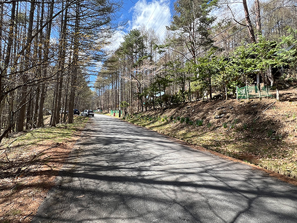 南側が幅約4mの舗装公道に接する