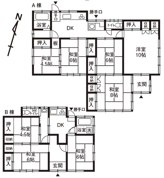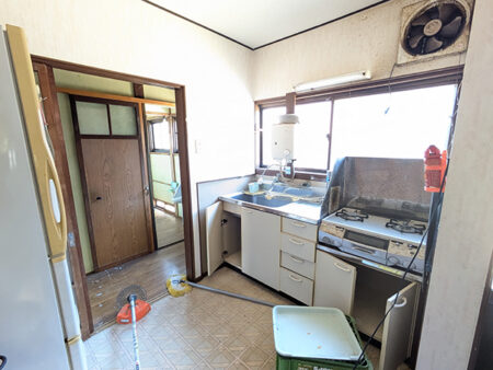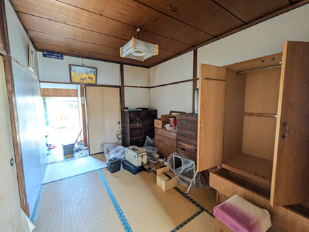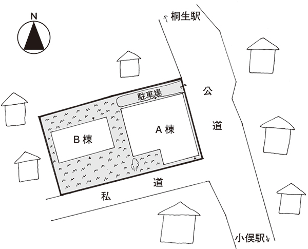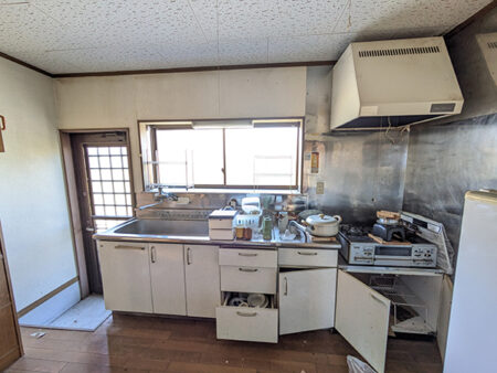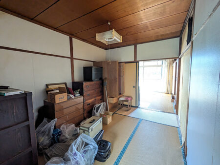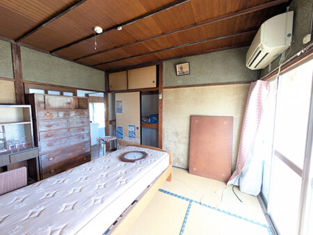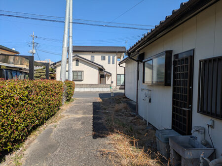 桐生市境野町は栃木県足利市と接した市街地で、低層住宅とスーパー等の商業施設が点在する閑静な住宅街。半世紀前まで存在した両毛線東桐生駅近くに位置しているのが今回の物件で、約110坪の宅地に建物が2棟あり、手前のA棟が空き家歴5年程度、奥のB棟が10数年以上空き家状態のため今回売却へ踏み切った。敷地内には車2台分縦列駐車出来るスペースがあり、A棟は外観の状態は良いためリフォーム工事を行い、B棟を解体することで駐車場や家庭菜園等、敷地を広く取ることで有効活用出来そうだ。南向きで日当たりも良いため、民泊・貸家を行う投資用物件として取得する考え方もあるだろう。