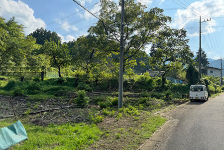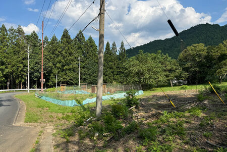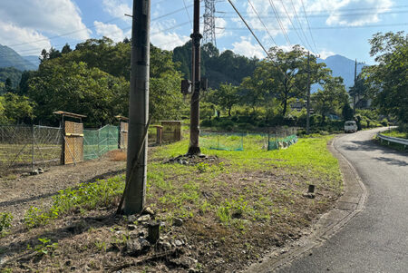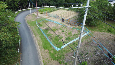 秩父市の西側に位置する荒川日野地区は、合併前の役場やスーパー、図書館や中学校が集まっている。東西に伸びる国道140号は山梨まで至り、沿道には穏やかな里山が続く。物件は国道から約900mほど山側に入った里山の一角にある広い農地。婉曲した道路に沿った三角地の畑で、突端部分に携帯電話の鉄塔があり、その部分(約70�u)は分筆して引き渡す。北側から西側は道路に接し、その先は大きな木々に囲まれており、周囲の家からも適度に離れた独立感が魅力。土いじりをしながら農的暮らし、セカンドハウスとしての隠れ家、ガレージやトレーラーハウスの設置など、周囲を気にせず様々なプランが考えられそうである。
