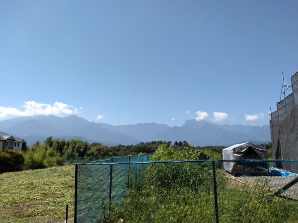 北杜市長坂町塚川にある228坪の土地。のどかな場所でありながらも、須玉インターより9分とアクセスのいい場所にある。この辺りは、移住者が点在しているエリアで、周辺には雑木林と田畑が広がる。敷地からあるいてわずかで、甲斐駒ヶ岳をはじめとする、南アルプスを望むことができる。こちらの土地は、上下水道が使用できるのが魅力的だ。現況は雑木林なので、今ある木を活かして、雰囲気のある庭づくりが出来そう。変形地であるが、面積的には建物を建てるスペースは十分確保できる。土地の形状を活かし、例えば、北側に家を建て、南側の細い敷地には菜園を作る、など家の設計と、土地利用をデザインするのが楽しみになってくる。