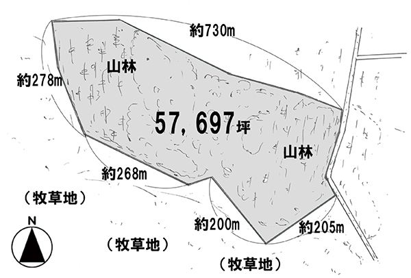 弟子屈町は摩周湖、屈斜路湖、釧路川、温泉、大牧場がある道東の観光地。気温は、夏 22.5℃、冬マイナス12.8℃で、降雪量は50〜100cmほど。物件は弟子屈町市街地の南に位置し、国道391号線から約4.2 km入った所にある。未舗装の公道を走り、林を抜けた牧草地に接して約19ヘクタールの一団の山林となっている。こんもりと小高い丘となっており、適度な起伏の土地に木々が生い茂っている。周囲には牧草地が広がり、雄大な雰囲気が広がっている。生活インフラの整備から必要で、水源確保、電柱の設置、木々を伐採してキャンプ場用地などゼロイチで大自然を楽しむ土地として検討が必要。坪単価では約260円。