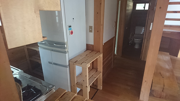 電気、湧水(飲用水は持ち込み)、水洗(浄化槽)、PG