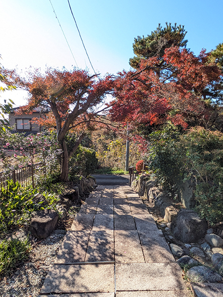 南西側が幅約3mの舗装公道、北東側に幅約1mの未舗装公道に接する