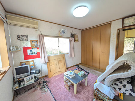 桐生市新里地区は前橋市とみどり市に挟まれた桐生市の飛び地エリアとなっており、桐生市中心部よりもみどり市中心部の方が近いため、普段の買い物等は大間々エリア内で完結することが出来る。国内で唯一教育委員会が直営している「ぐんま昆虫の森」から車で約3分の場所にあるのが今回の物件で、かつて畑だった場所を建物4棟に区画分譲したうちの1箇所だ。冬期には赤城おろしが吹き荒れる東毛地区では防風林が重要なアイテムとなるが、物件のすぐ北側に雑木林があるため安心な環境。建物は戸建てで1LDKとコンパクトなサイズだが、昨今の世帯数を考慮すると案外ちょうど良いサイズ感だろう。