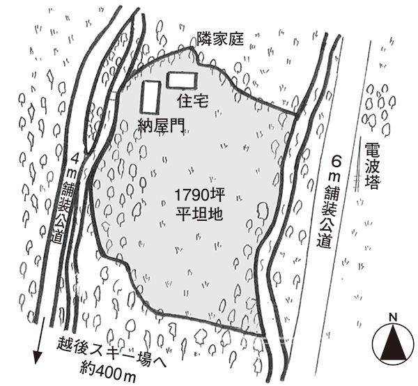 西側の幅約4mの舗装公道に接する。
