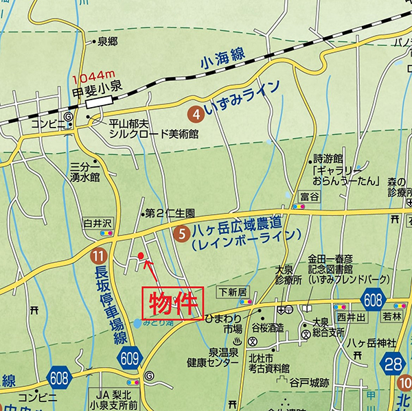 中央本線長坂駅より約5.9km、中央道長坂ICより約7.7km 車で14分