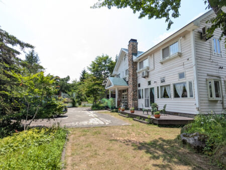 福島県を代表する観光地である裏磐梯高原は、磐梯山の噴火によってせき止められた大小300以上の湖沼が広がっており、五色沼は沼によって色彩の異なる不思議な光景から、神秘の湖沼としてミシュラングリーンガイドにも認定。檜原地区中心部から徒歩圏内にあるのが今回のペンションで、薪ストーブのある煙突が特徴のウッドデッキ付き洋風建築。建物は屋根裏を含めると3階建で、1階に食堂・厨房・浴室、2階に定員の異なる客室が7部屋あり、ペンションとしては十分な収容力を確保。昼はレストランとして営業し夜は民泊経営など、自由度の高さを活かして様々な活用方法を考えられるのが魅力的。